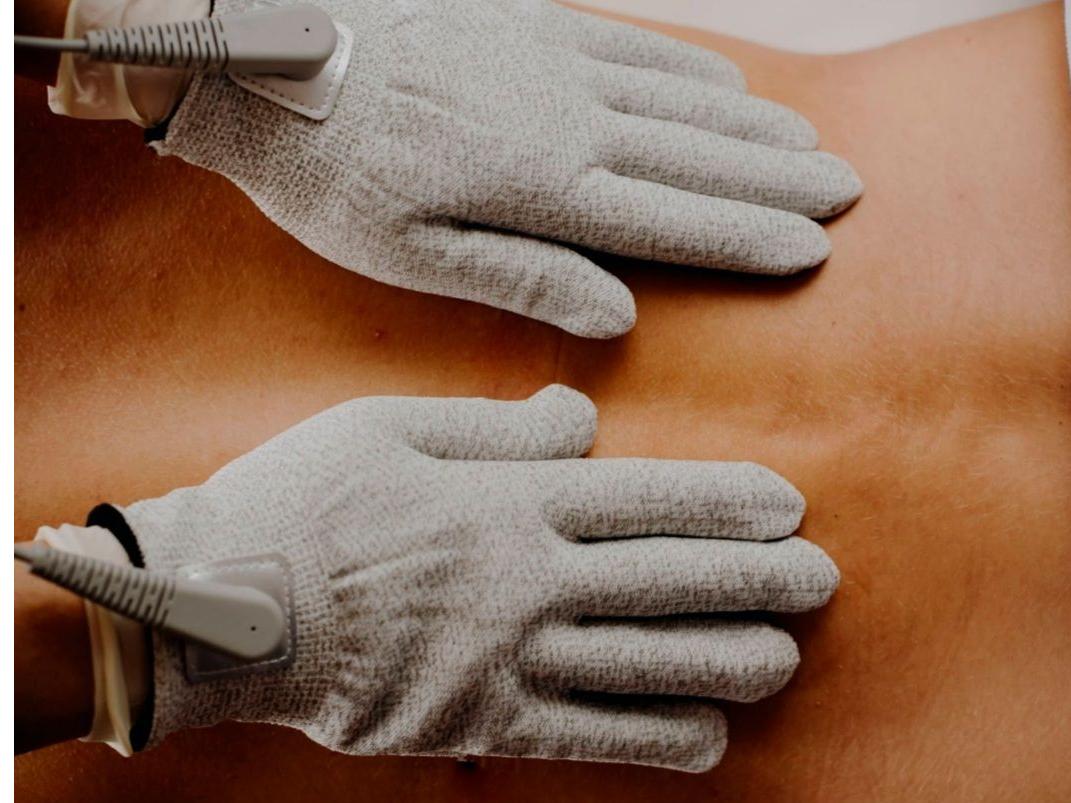 Masáž s rukavicami zo strieborného vlákna podľa tradičnej čínskej medicíny (TČM) je pomerne špecifická technika. Strieborné vlákna majú antibakteriálne vlastnosti a podporujú lepšie vedenie energie (Qi) cez pokožku. V TČM sa masáž používa na: Zlepšenie cirkulácie Qi a krvi – rukavice, ktorými sa do tela dostáva bioprúd stimulujú meridiány a odstraňujú bloky. Detoxikáciu tela – masáž podporuje vylučovanie toxínov cez lymfatický systém. Zníženie zápalu a bolesti – vďaka antibakteriálnym a vodivým vlastnostiam striebra.
